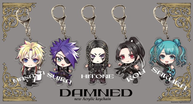 DAMNEDアクリルキーホルダーの5人セットです。 まとめ買いで1500円値引きで購入できます。 ※個別購入を希望の方は各メンバーの商品ページから購入お願いします。
